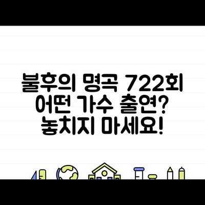 여러분, 최근 불후의 명곡 722회 방송을 보셨나요? 그 무대에서 어떤 감동적인 순간들이 펼쳐졌는지 여러분과 나누고 싶어요!